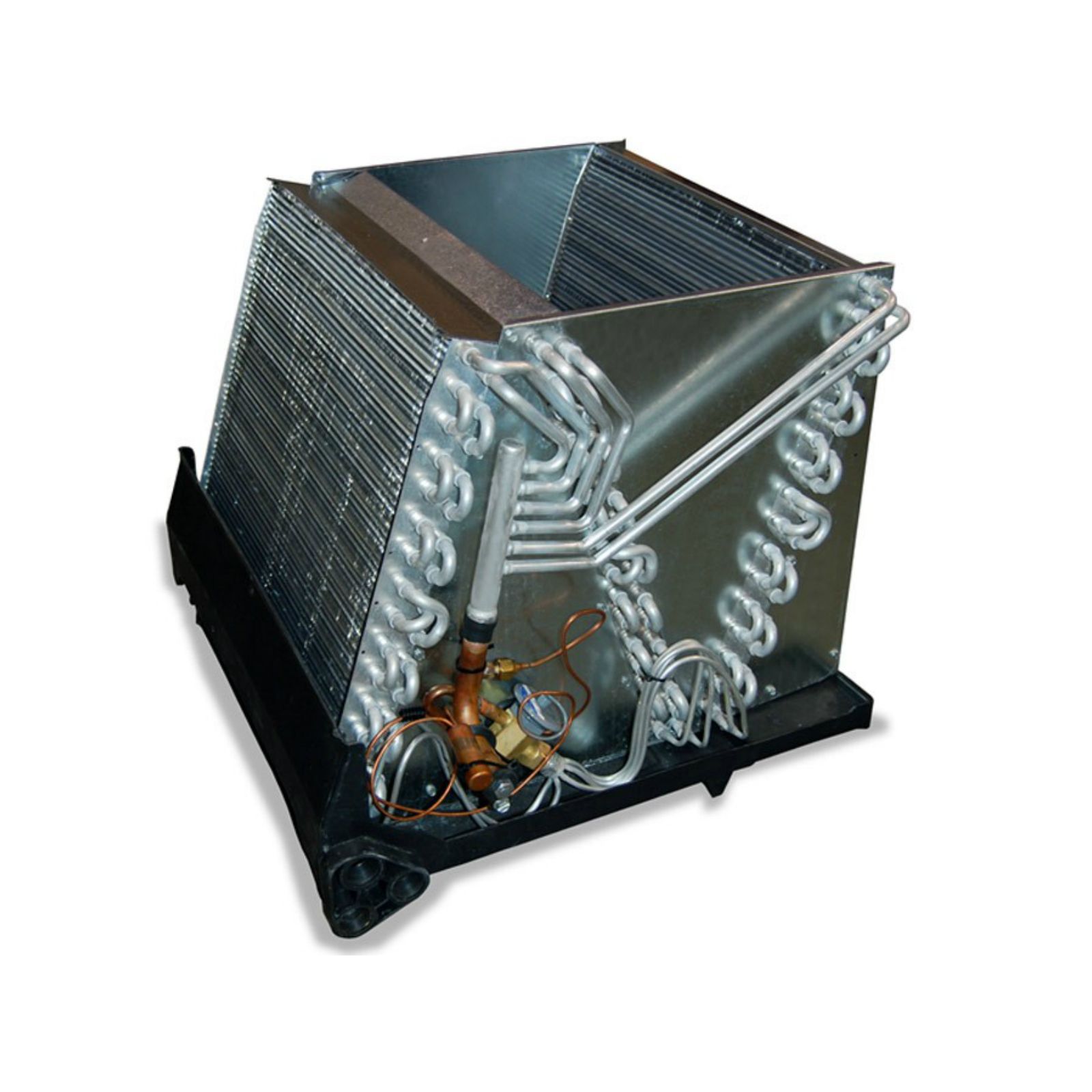 Rheem Uncased Coils For Air Handlers Features: Rheema® Indoor Replacement Coils are designed for use with Rheem outdoor units and are available for vertical upflow or downflow, and horizontal left or horizontal right airflow. When matched with Rheem outdoor units, this coil provides a nominal capacity of 36,000 BTU/HR. Constructed of aluminum fins bonded to internally grooved aluminum tubing. Coils are tested at the factory with an extensive refrigerant leak check. Coils have copper sweat refrigerant connections. Feature two sets of 3/4" [14.1 mm] N.P.T. Condensate drain connections for ease of connection. Chatleff metering device connections. Approved for system application with variety of Rheem outdoor units. Condensate drain pan is constructed of high grade, heat resistant, corrosion free thermal-set material. Compatible with Germicidal Light System (UV resistant) Bi-Directional airflow eliminates the need to switch any internal components from horizontal left to right. Unique drain pan design maximizes application flexibility and condensate removal. N-Coil design maximizes performance and minimizes height required at installation. Cabinet width 24"